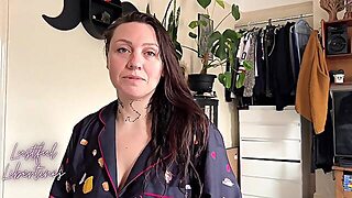 Pawg stepmom with big natural tits catches her stepson jerking off in her bedroom and helps him