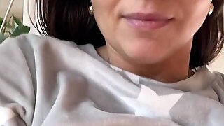 A couple has fun at home with a stunning brunette milf