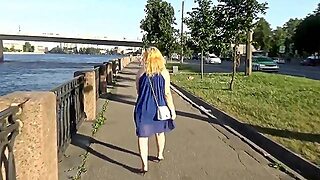 Flashing Pussy Outdoors in a Wrap Dress No Panties