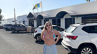 Exhibitionist wifey unclothes down at Parking bunch to Walk Naked to the Beach
